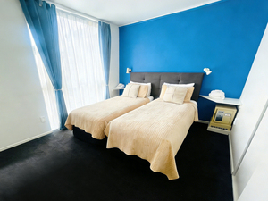 We offer 4 very spacious and quiet 2 bedroom family units. Our Family units have a king bed (which can be split into 2 singles by prior arrangement) in 1 bedroom and 2 single beds in the 2nd bedroom, some of our family units also have a sofa bed in the living room for the 5th guest. They have full kitchen facilities with oven & microwaves, ensuite bathrooms with shower.